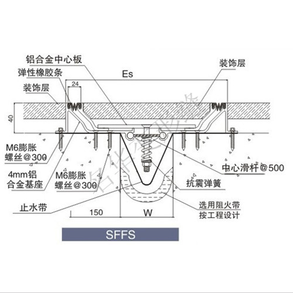 ◎ 接缝平整,隐蔽性好; 适应抗震及大位移要求; 中心板可嵌置不同材质的装饰材料。